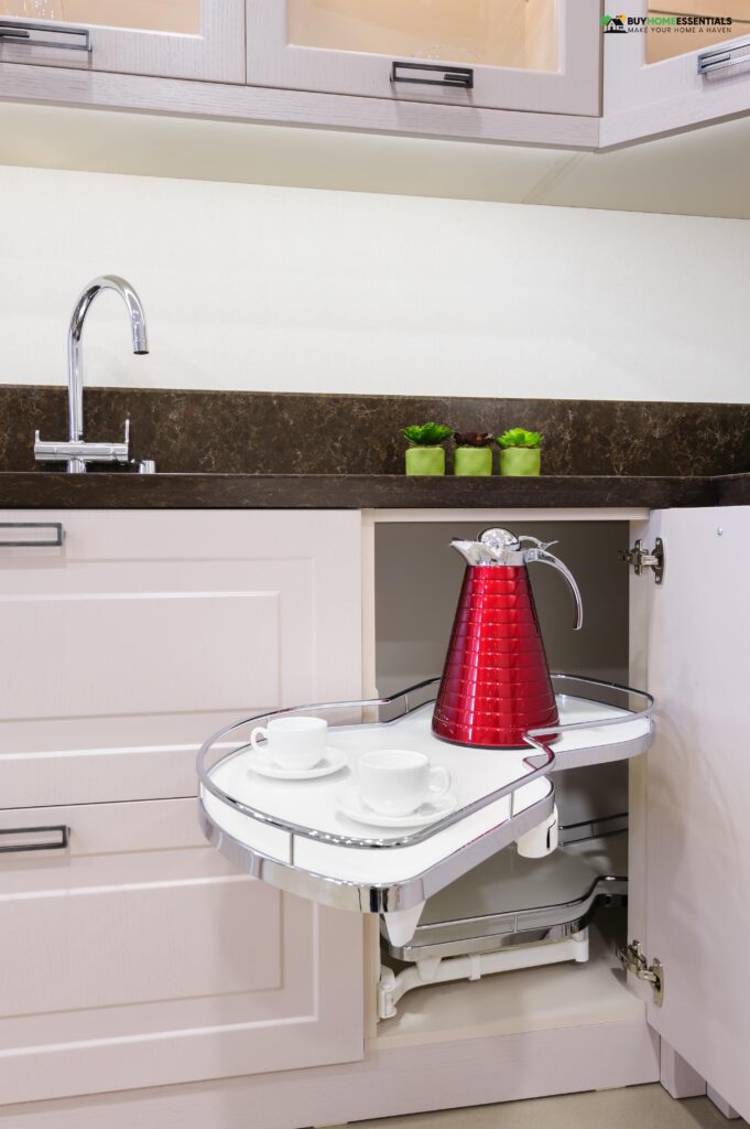 Lazy Susans are rotating trays that provide easy access to items, especially in corner cabinets. You can use them to store spices, condiments, or small items lost in your cabinets.