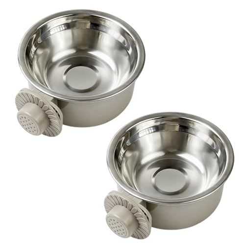2Pcs Pets Lightweight Stainless Steel Bowl,Removable Stainless Steel Pet Hanging Food Water Feeder Bowl for Puppy Dog Cat Rabbit Ferret Bird Gunea Pigs