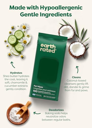 Earth Rated Pet Wipes for Dogs and Cats, Hypoallergenic, Cleaning and Hydrating, for Paws, Body and Butt
