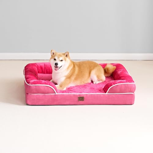 EHEYCIGA Orthopedic Dog Beds for Medium Large Extra Large Dogs, Waterproof Memory Foam XL Dog Bed with Sides, Egg-Crate Foam Couch Bed with Washable Removable Cover